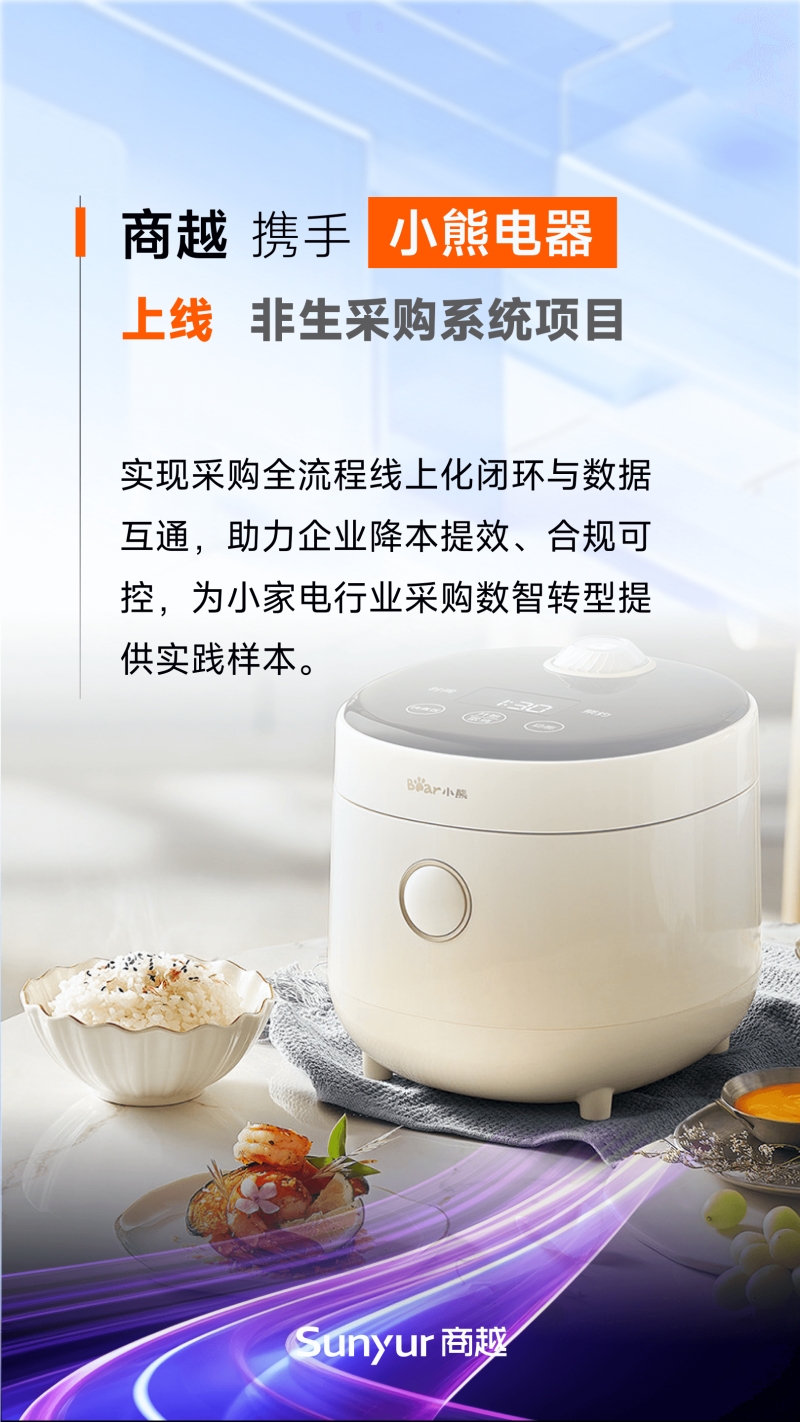 未来,商越科技将与小熊电器持续深化采购数智化应用,扩展品类覆盖、完善库存管理等功能,持续释放采购转型价值,推动采购业务实现阳光透明、合规可控。