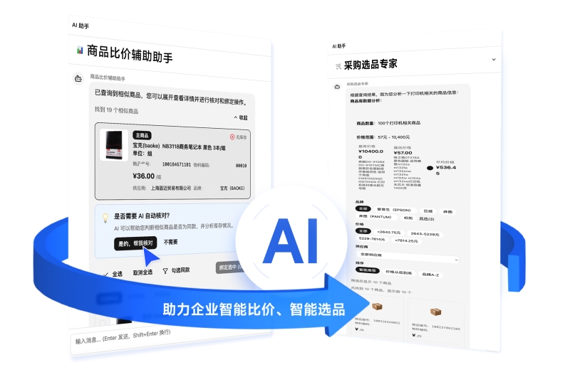 在企业数智转型持续深化的当下,采购环节仍面临诸多核心痛点:需求提报阶段流程繁琐、跨部门协同成本高且紧急需求响应慢;采购选品时海量商品信息筛选困难、选品决策依赖经验、市场概况获取低效;比价环节同款商品不同渠道价格差异难溯源……